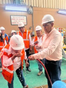 Uno de los momentos de mayor interés de los visitantes, fue cuando estuvieron en la planta Desalinizadora donde pudieron probar el agua que Southern Perú desaliniza hace más de 40 años en Ilo. Muchos se mostraron sorprendidos por el sabor del recurso hídrico. El recorrido también incluyó espacios de Refinería, Fundición, Patio Puerto, entre otros.